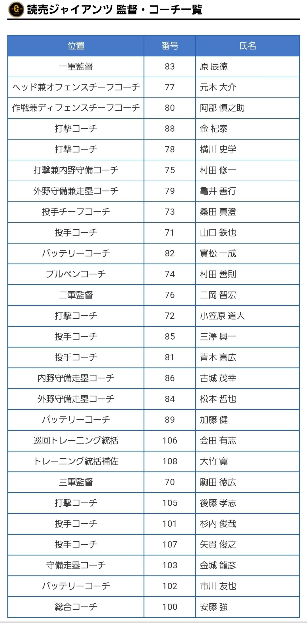 巨人は変なのばっかコーチとして呼んでるよな