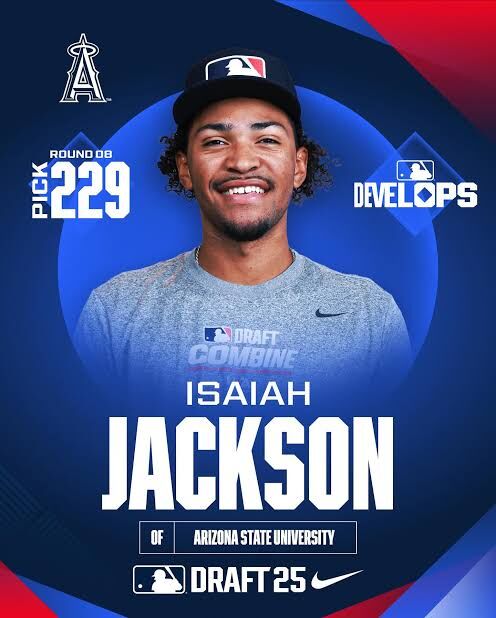 With their 8th‑round pick (No. 229 overall), the @Angels select @ASU_Baseball outfielder Isaiah Jackson, No. 214 on the Top 250 Draft Prospects list.