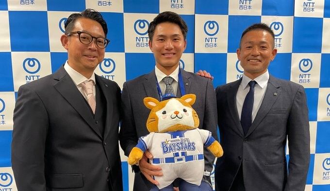 DeNA、D5位のNTT西日本・成瀬脩人に指名あいさつ 遊撃レギュラー争いに名乗り「しっかりキャンプからアピールしたい」