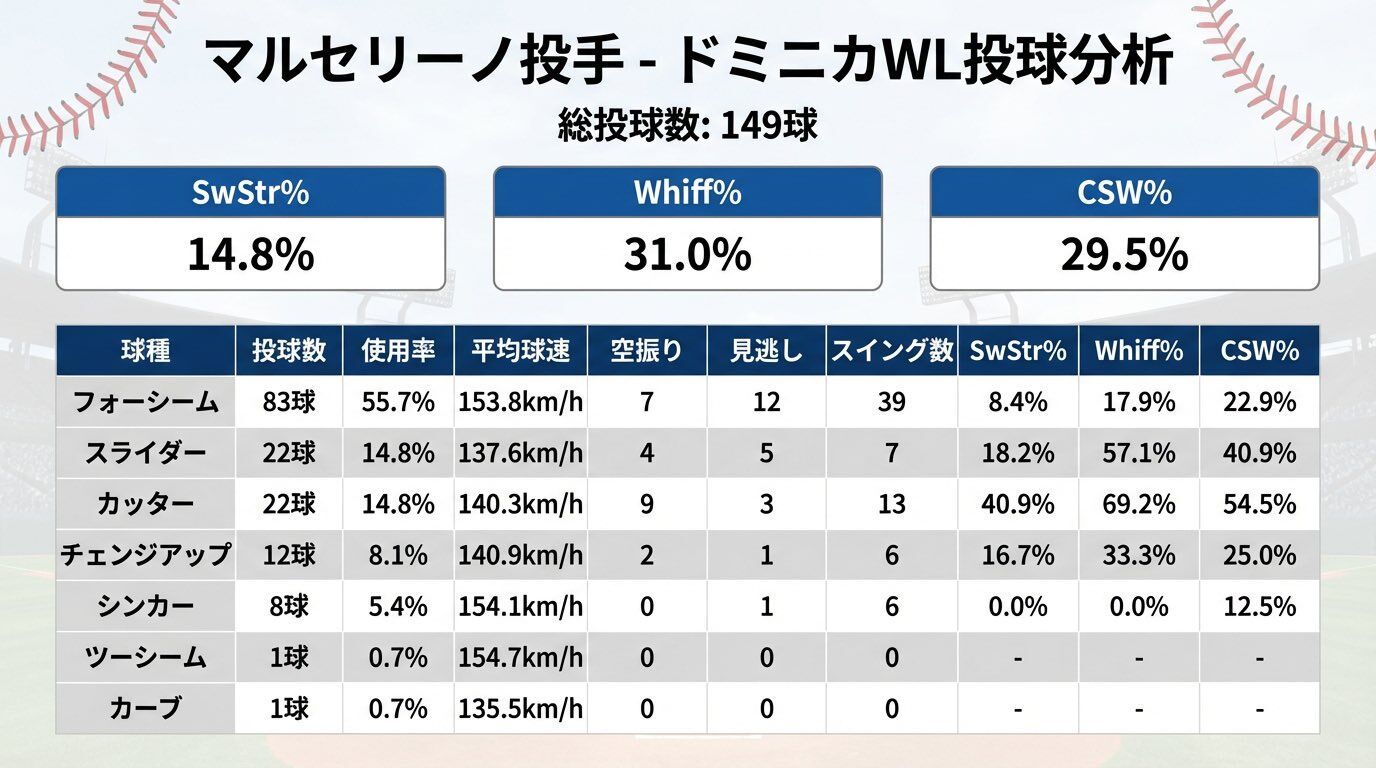 マルセリーノの変化球、ほとんどバットに当たっとらんのなぁ