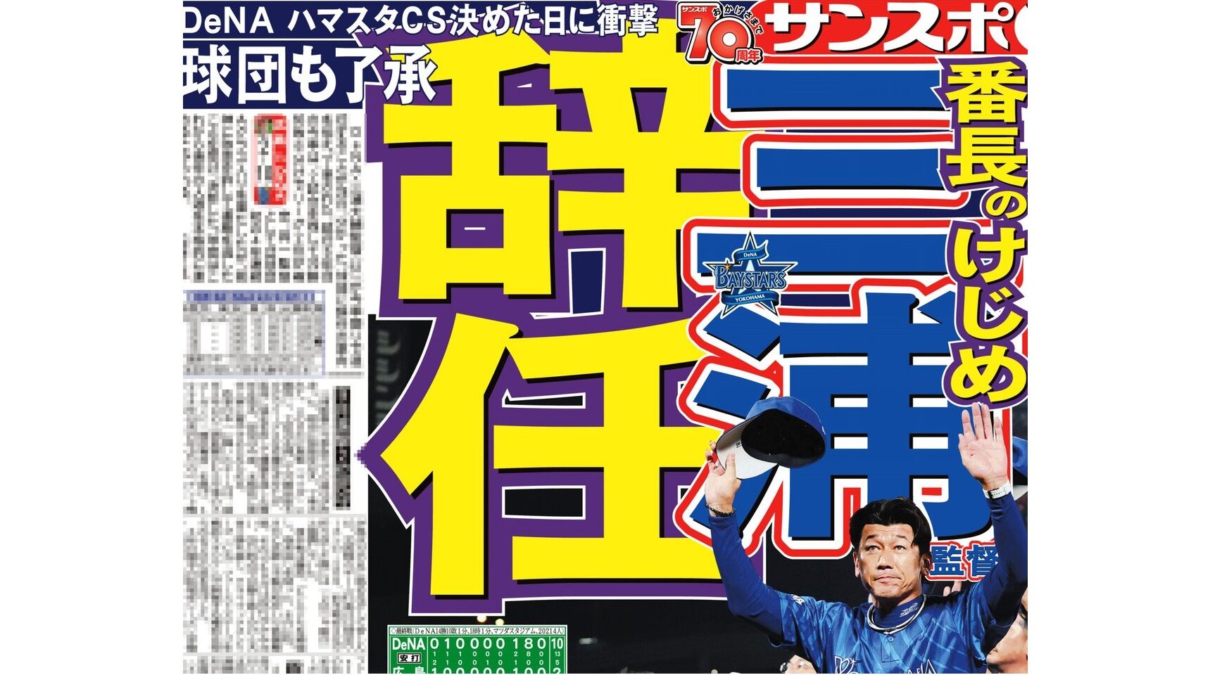 DeNA・三浦大輔監督は契約延長を固辞していた 2位決定もV逸の責任をとり辞任